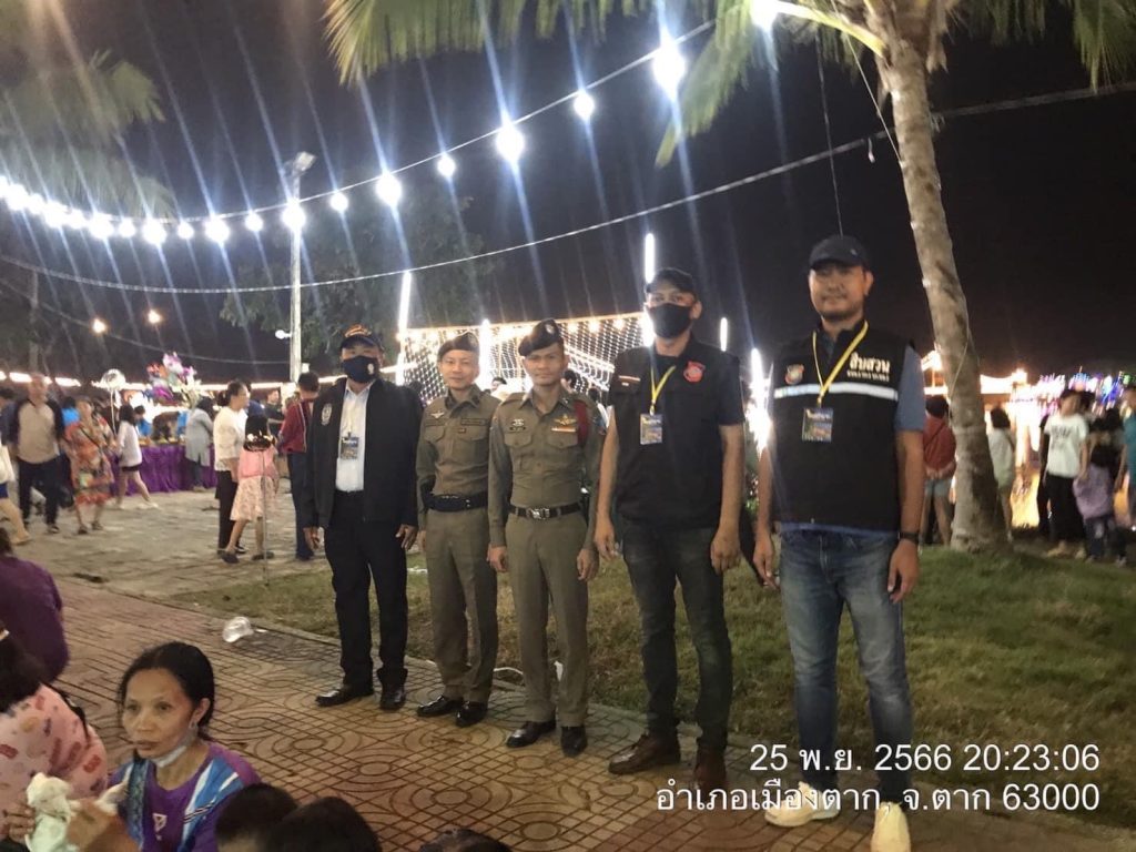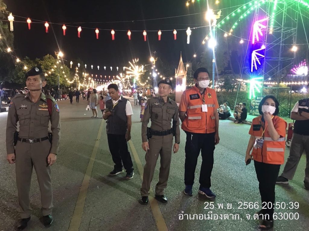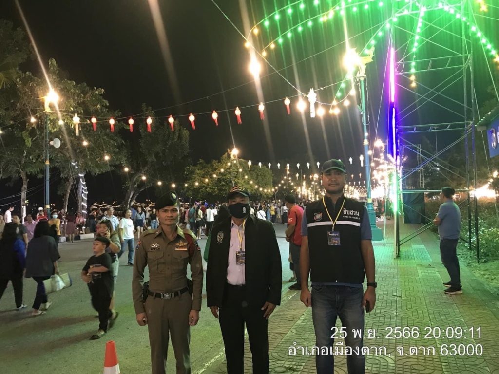 เขียนวันที่ 25 พฤศจิกายน 256625 เมษายน 2024งานลอยกระทงสาย ตำรวจท่องเที่ยวตาก นำโดย ร.ต.อ.ภาณุวัฒน์ ศิริพันธุ์ รอง สว.ส.ท..3 กก.3 บก.ทท.2, สายตรวจท่องเที่ยวตาก และอาสาสมัครตำรวจท่องเที่ยวตาก ปฎิบัติหน้าที่อำนวยความสะดวก เพื่อสร้างความเชื่อมั่นด้านความปลอดภัยในชีวิตและทรัพย์สินให้กับประชาชนและนักท่องเที่ยว บริเวณงานลอยกระทงสาย ไหลประทีป 1,000 ดวง ณ ริมแม่น้ำปิง อ.เมืองตาก จ.ตาก