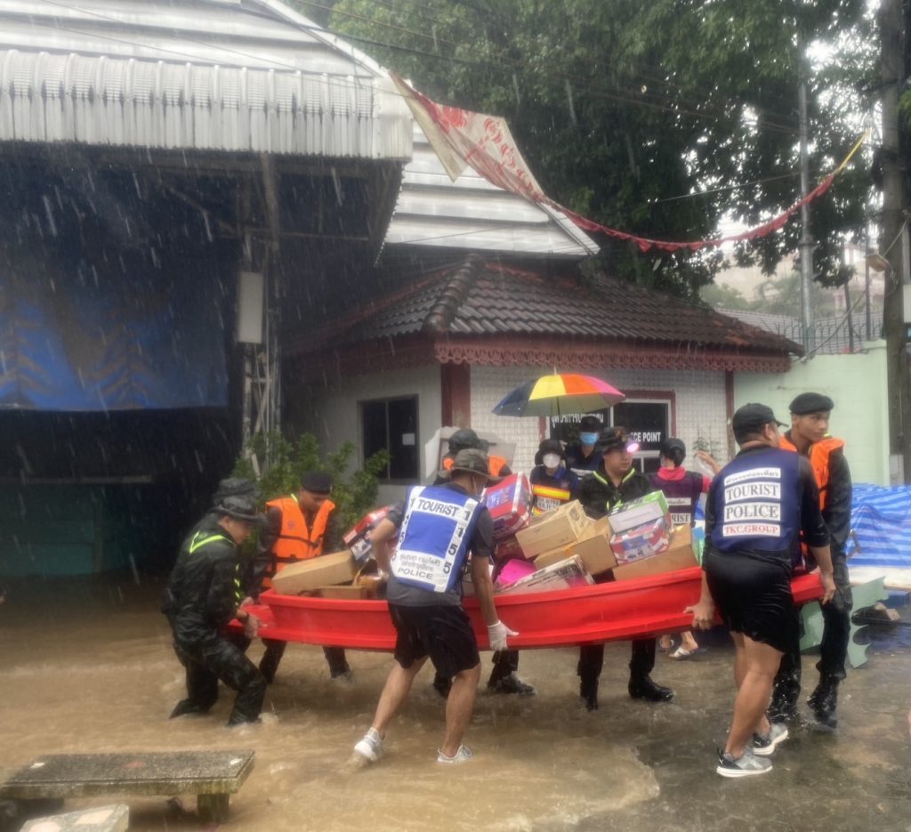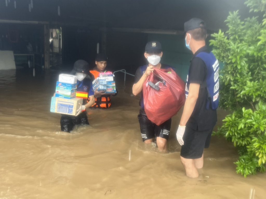 เขียนวันที่ 26 กรกฎาคม 256729 กรกฎาคม 2024ช่วยเหลือผู้ประสบภัยน้ำท่วมบริเวณตลาดริมเมย เนื่องจากห้วงหลายวันที่ผ่านมาได้มีฝนตกหนักใน 5 อำเภอชายแดนตาก จึงทำให้เกิดน้ำไหลหลาก น้ำท่วมในหลายพื้นที่ นั้น พ.ต.ท.ยศสรัล หิรัญวัฒนาชัย สว.ส.ทท.3 กก.3 บก.ทท.2 ได้มอบหมายให้ ร.ต.อ.ภาณุวัฒน์ ศิริพันธุ์ รอง สว.ส.ทท.3 กก.3ฯ นำข้าราชการตำรวจ ส.ทท.3 กก.3 บก.ทท.2 ออกช่วยเหลือผู้ประสบภัยน้ำท่วมบริเวณตลาดริมเมยโดยให้การช่วยเหลือพ่อค้า แม่ค้าอพยพขนย้ายสิ่งของขึ้นไว้บนที่สูงและมอบน้ำดื่ม เพื่อเป็นการบรรเทาความเดือดร้อนในเบื้องต้น